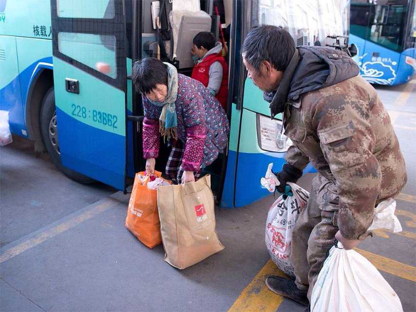 圖一:來自連云港的老王夫婦。老王61歲,老伴59歲。生有一雙兒女。兒子在丹陽(yáng)打工,女兒在老家工作,都已各自成家。老兩口在揚(yáng)州施橋承包了30畝地。2月8號(hào)上午,老兩口帶著孫女來到揚(yáng)州汽車西站,老伴兒準(zhǔn)備帶孫女去丹陽(yáng)兒子家過年。