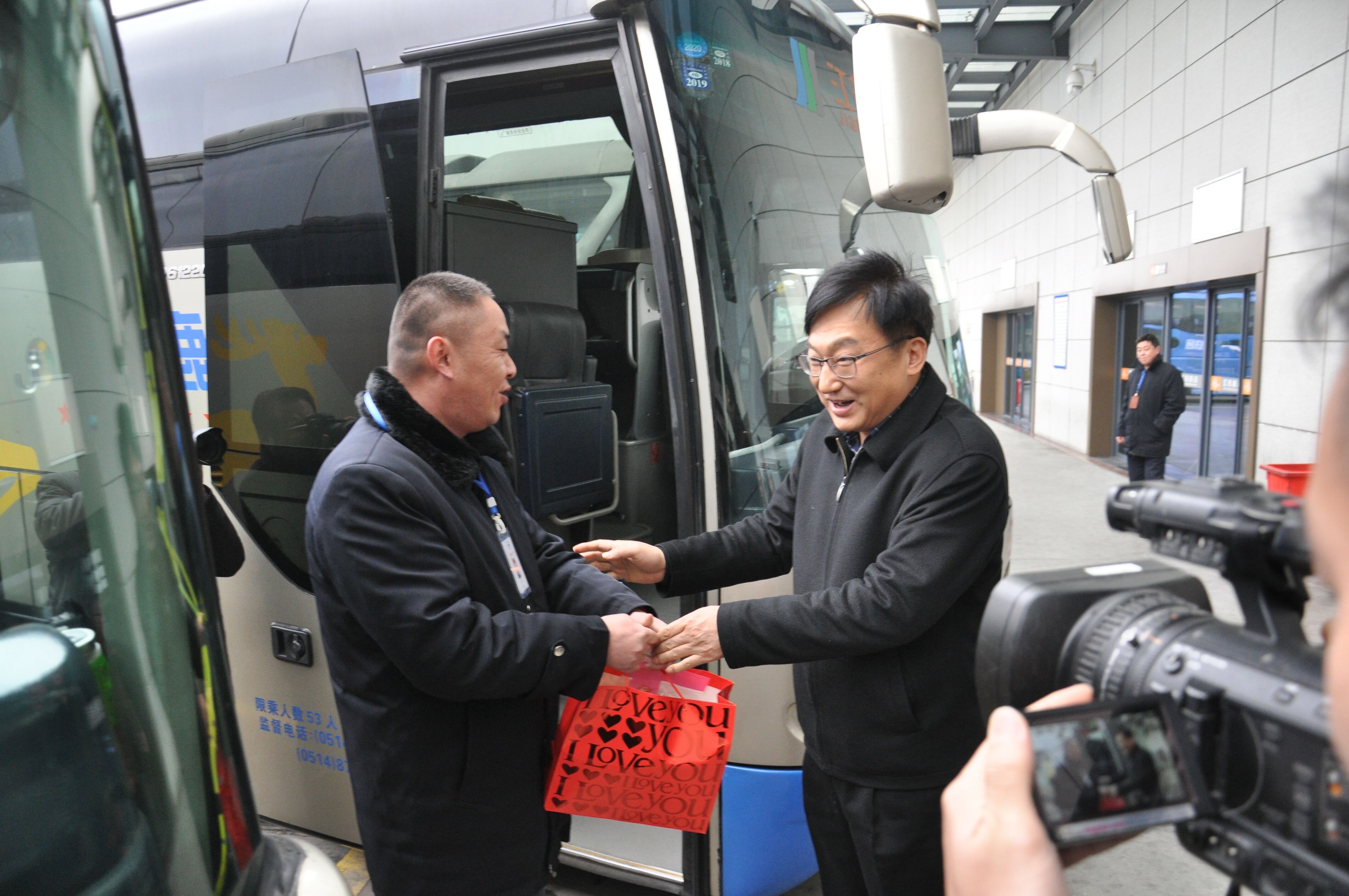 會(huì)議結(jié)束后,丁市長(zhǎng)一行前往公交和揚(yáng)汽的場(chǎng)站,對(duì)一線駕駛服務(wù)人員進(jìn)行慰問。丁市長(zhǎng)還登上揚(yáng)汽的大巴車,給旅客送上了象征吉祥如意的桔子,祝福大家一路平安,闔家幸福。