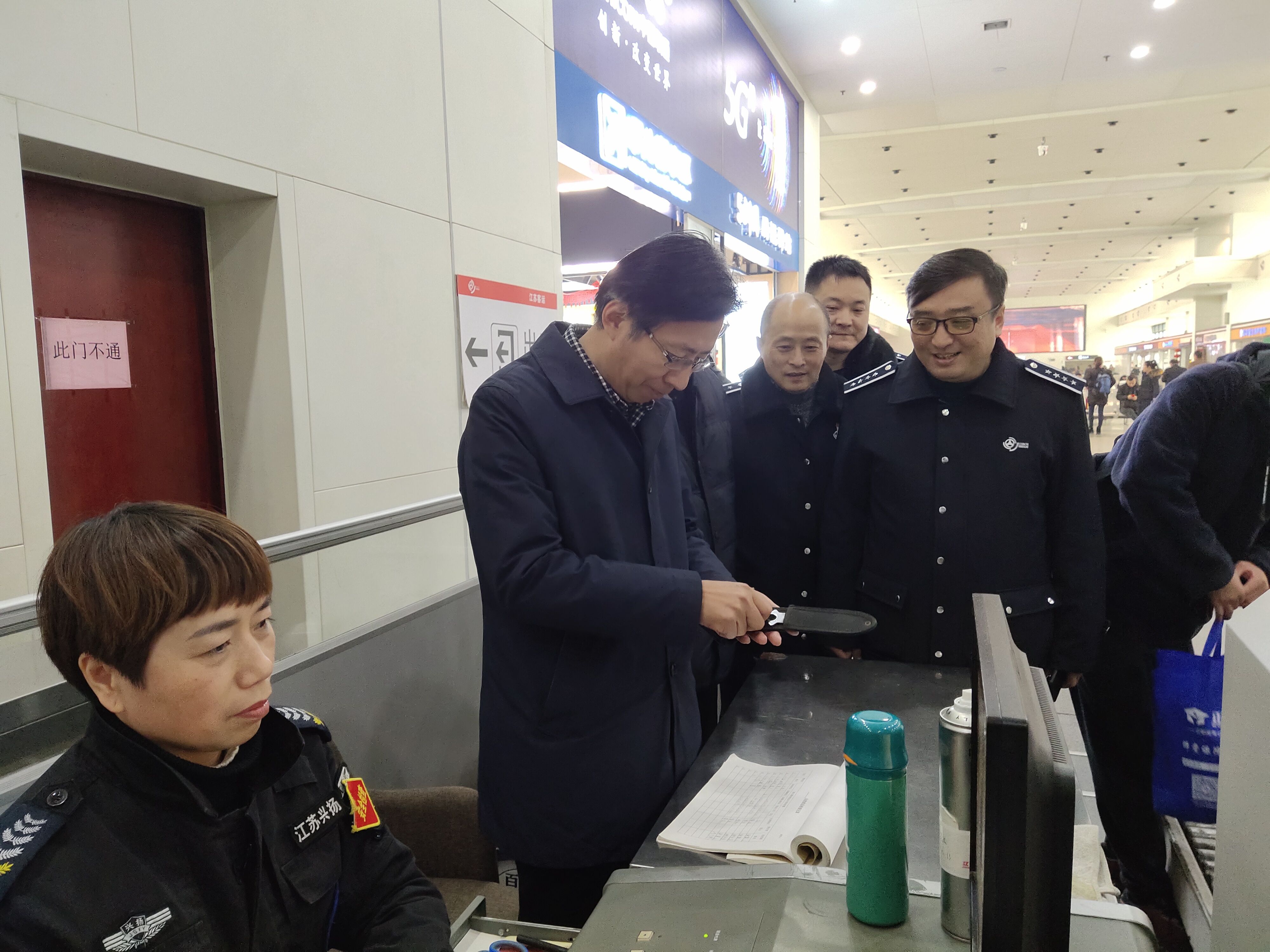 在安檢現(xiàn)場(chǎng),徐斌局長(zhǎng)查看了安檢工作人員春運(yùn)期間查獲的管制刀具,他強(qiáng)調(diào)要時(shí)刻繃緊安全這根弦,絲毫不能懈怠,堅(jiān)決杜絕危禁品上車(chē);在候車(chē)大廳,他詳細(xì)了解了旅客安全帶的系戴情況,對(duì)揚(yáng)州站嚴(yán)格執(zhí)行“三不進(jìn)站,六不出站”表示了肯定。春節(jié)在即,徐斌局長(zhǎng)要求,在抓好安全生產(chǎn)工作的同時(shí),要不斷提升服務(wù)質(zhì)量,充分展示好政府的“窗口”形象,展示出交通人守初心、敢擔(dān)當(dāng)、勇于奉獻(xiàn)的精神面貌。