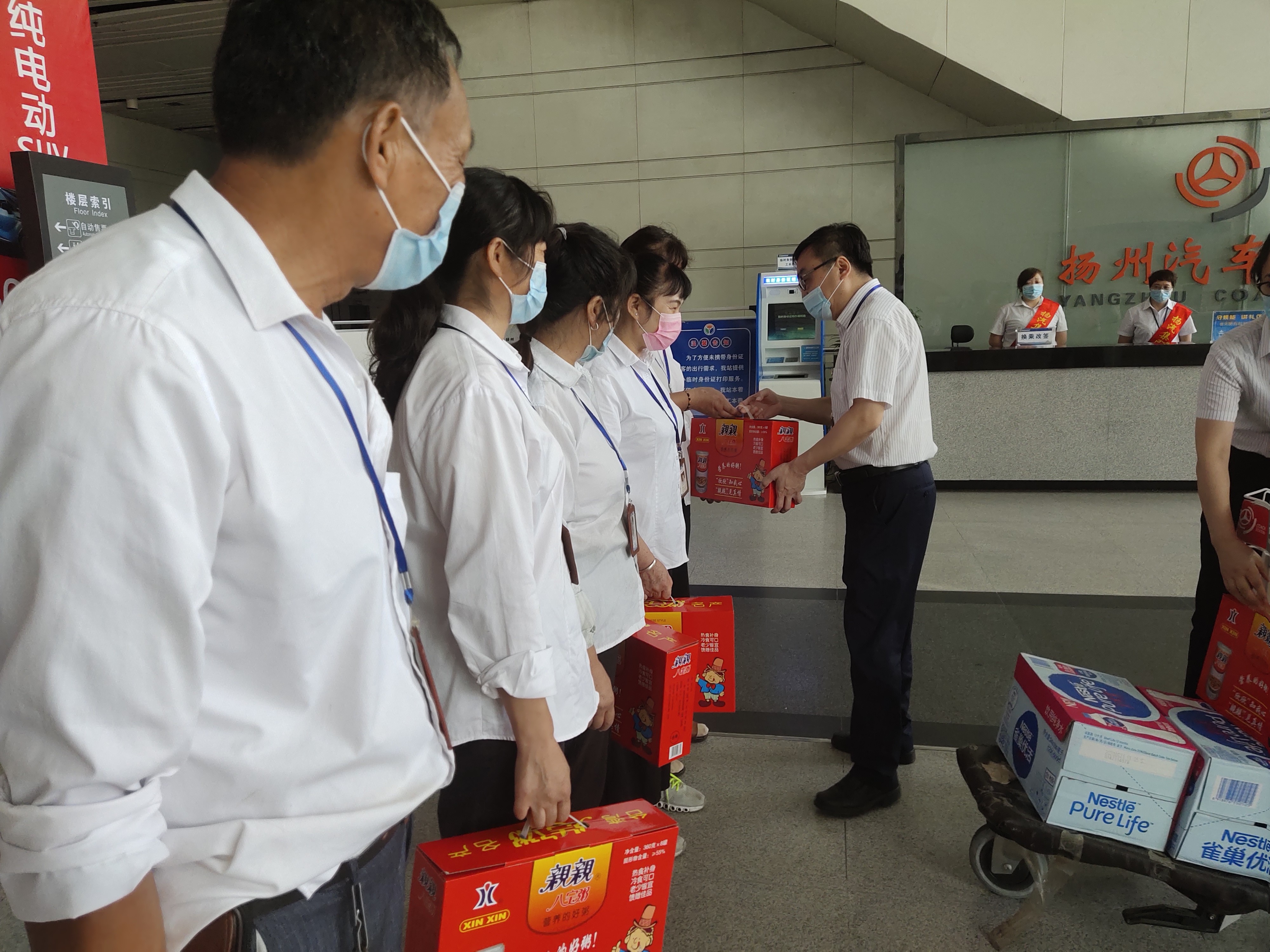 揚州站:在疫情防控進入常態(tài)化的情況下,揚州站疫情防控工作絲毫沒有松懈,連日的高溫,給揚州站疫情防控工作也帶來了挑戰(zhàn)。為了進一步鼓勵一線職工的斗志,8月18日揚州站組織了送涼爽慰問活動,向高溫天氣中堅守崗位的志愿者、保潔等一線職工送去防暑降溫慰問品,在慰問中叮囑職工注意防暑降溫、勞逸結合,做好安全保障措施,確保勞動安全和身體健康。同時也進一步勉勵他們更好的做好服務工作,為打造平安揚州、幸福揚州、精致?lián)P州做貢獻。