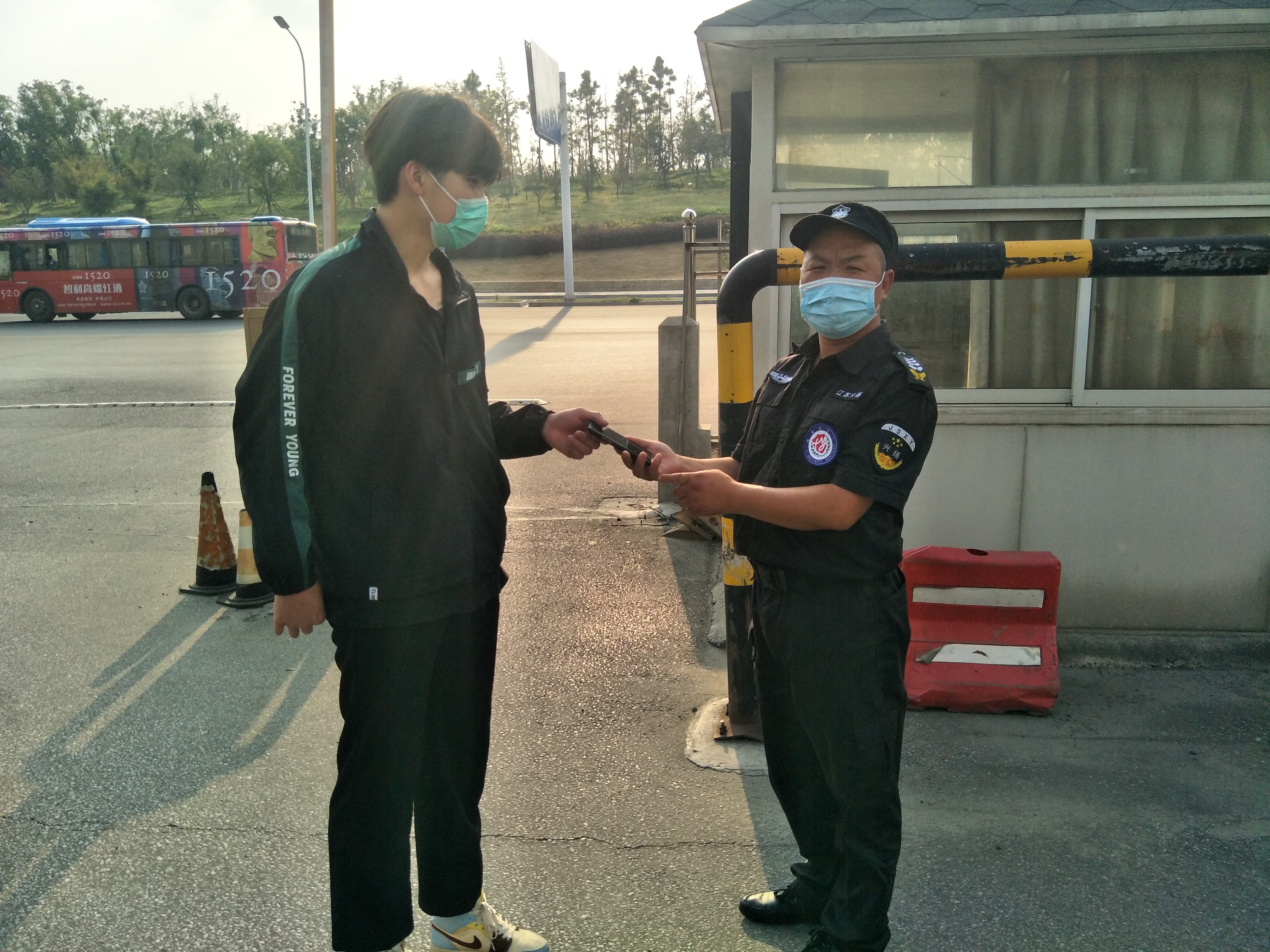 揚州站工作人員陪同小阮先生來到揚州站下客區(qū)管理亭,核實身份信息,在確定無誤后將手機予以交還,小伙子想當面感謝駕駛員師傅,沒想到駕駛員師傅將手機送到管理亭,交由保安師傅后已經(jīng)離開了,小伙子為了不留遺憾,要求跟我們保安師傅合影,向我們那位拾金不昧做好事不留名的駕駛員師傅表示感謝。