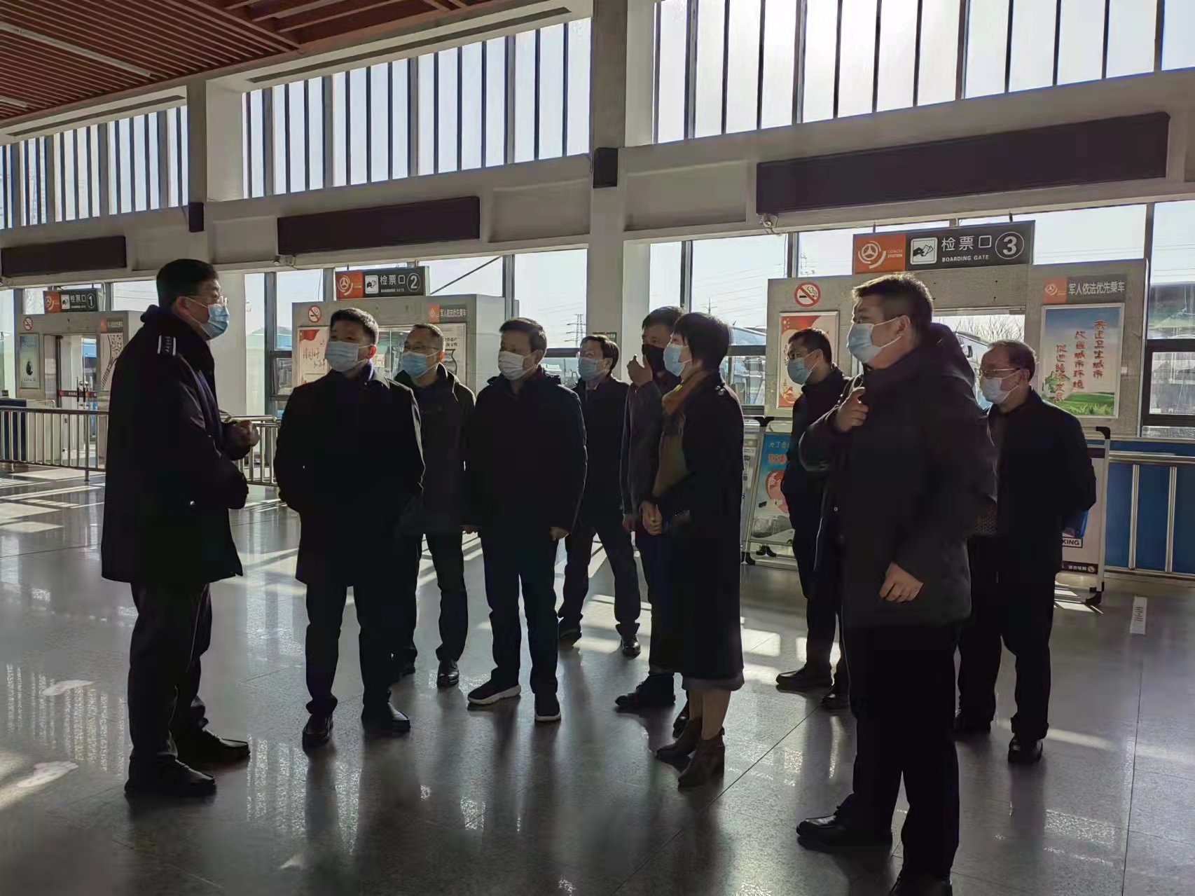 2月5日農(nóng)歷大年初五,江都區(qū)委副書記、區(qū)長(zhǎng)朱定金一行赴江都汽車站,督導(dǎo)檢查疫情防控工作,看望慰問(wèn)堅(jiān)守在疫情防控一線的工作人員,向他們致以新春的祝福和節(jié)日的問(wèn)候,并送上慰問(wèn)禮品。江都區(qū)政協(xié)副主席徐守祥及相關(guān)部門負(fù)責(zé)人陪同。