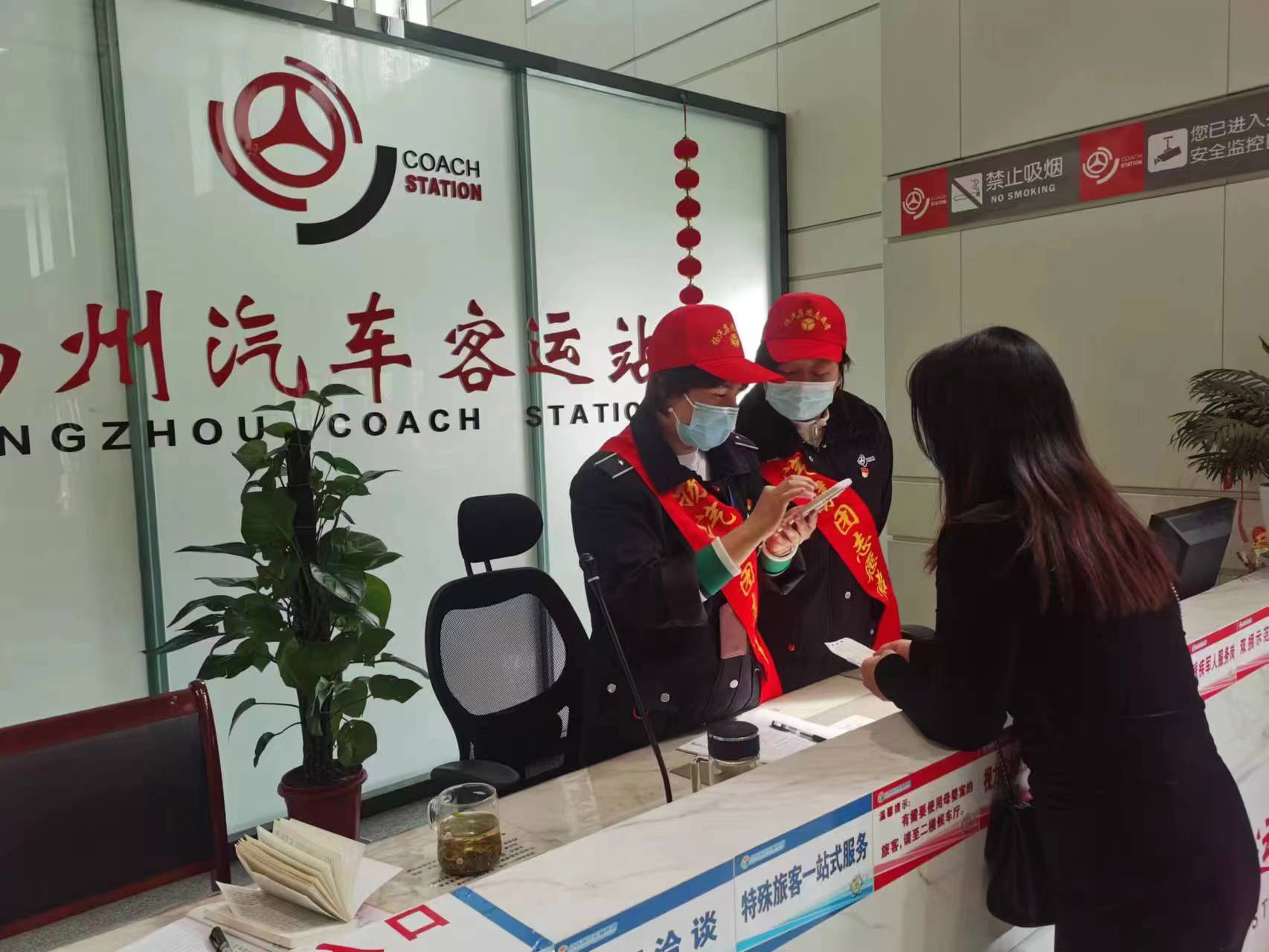 在江都汽車站,一位老奶奶就等在了車站門口拖著一個大大的尼龍袋子,服務(wù)臺的志愿者見狀趕緊上前詢問,原來老年人有急事去往南京,而且患有高血壓,一著急就頭暈,也不知道怎么購票,感覺早早來總不會錯,但看著現(xiàn)在車站這么多窗口和機(jī)器,一下子不知道應(yīng)該怎么操作。工作人員一邊安慰老人,一邊幫老人在窗口買好了票,并幫助老人運(yùn)送行李,和發(fā)車員妥善安排好了老人的上車問題,才放心地回到自己的工作崗位。
