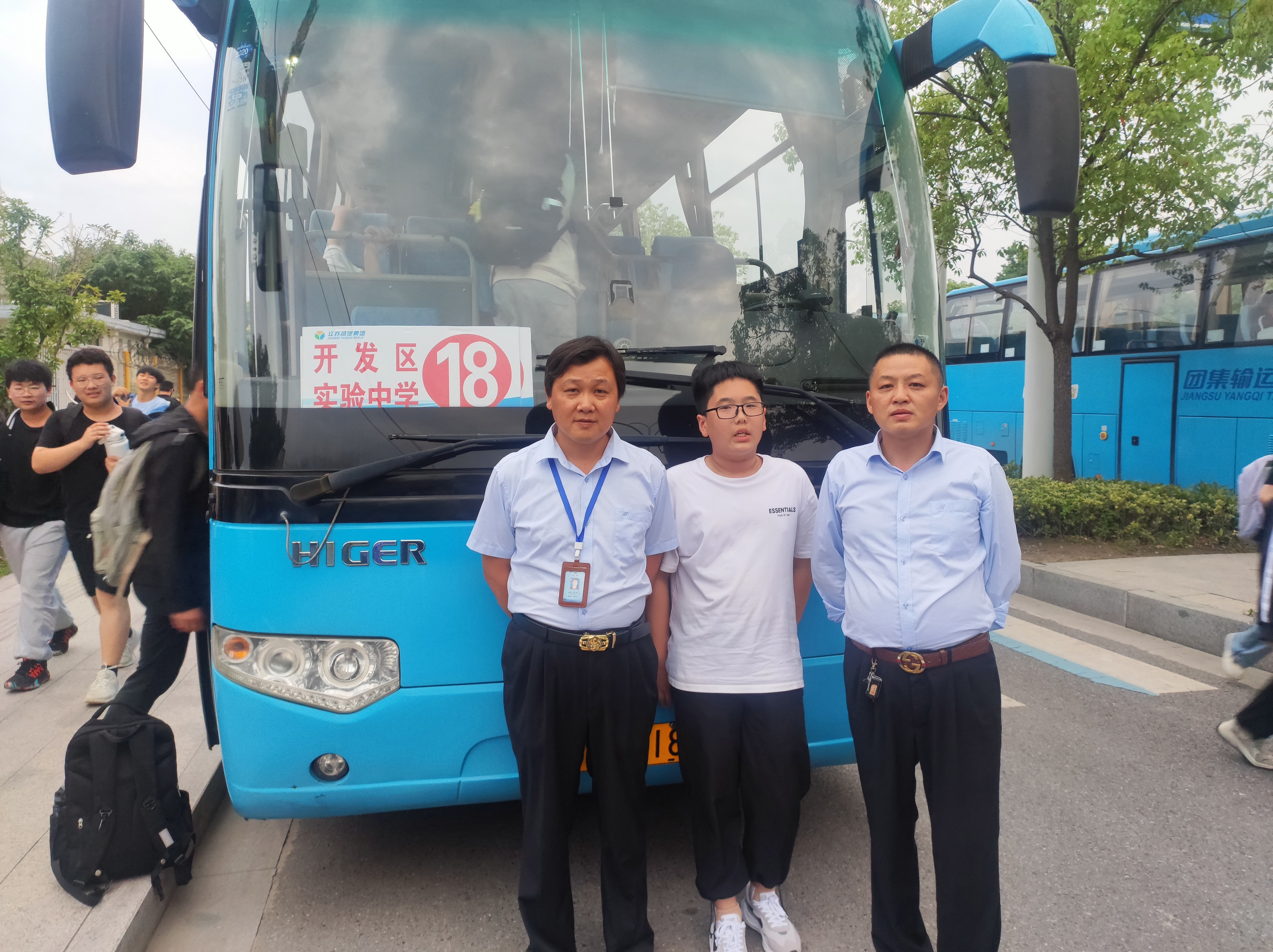 2022年9月26日晚,駕駛員葛斌師傅跟往常一樣,駕駛著經(jīng)濟開發(fā)區(qū)實驗中學(xué)專線校車,開往每一位學(xué)生回家的站臺。當(dāng)葛師傅駕駛校車接送學(xué)生到揚子津路藍爵莊園站臺,車子停穩(wěn)后開車門并及時提醒學(xué)生過馬路注意安全,然后學(xué)生開始下車,沒過1分鐘左右就看到一輛電動車突然倒在地上,葛師傅聽到有學(xué)生喊車子撞到人了,趕忙下車查看,看見一輛電動車倒在路的北面,一名學(xué)生初一(3)班劉炫霖倒在路的南邊。葛師傅立刻走到被撞傷的學(xué)生身邊,關(guān)心的詢問學(xué)生有沒有撞傷哪里,學(xué)生說腿疼,葛師傅趕緊聯(lián)系了劉炫霖的父母,并扶著劉炫霖同學(xué)到路邊座下。然后及時上報校車班刁龍泉班長,說明情況,當(dāng)時他車上還有其他學(xué)生的接送任務(wù),刁班長安排葛師傅繼續(xù)開車送其他學(xué)生回家,并及時趕到現(xiàn)場,等家長到了后并向家長說明情況才離開。接送任務(wù)結(jié)束后,葛師傅又主動聯(lián)系了家長詢問劉炫霖的受傷情況,得知并無大礙后才放心,家長在電話里向校車駕駛員和校車班組長表達了謝意。