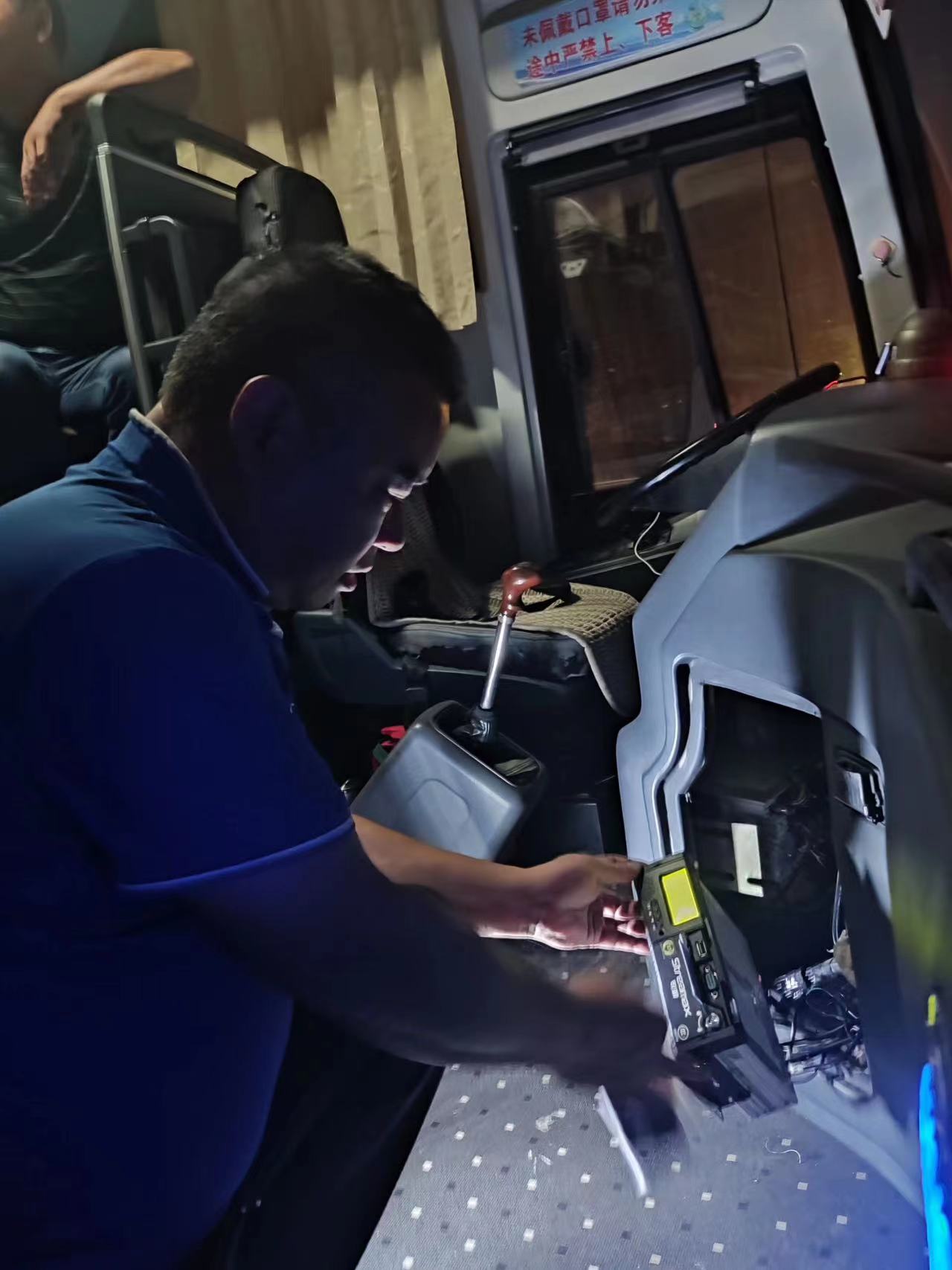 由于假期高速擁堵,車輛進(jìn)站時(shí)間延誤,班車駛進(jìn)車站后已到晚間,搶修人員趁著夜色立即對車輛的主動(dòng)智能防控掉線原因進(jìn)行全系統(tǒng)排查。經(jīng)全面檢查后,發(fā)現(xiàn)主機(jī)內(nèi)SIM卡損壞導(dǎo)致故障。為保障車輛明日的正常運(yùn)作,搶修師傅立即對SIM卡進(jìn)行更換,并對主動(dòng)智能防控系統(tǒng)進(jìn)行詳細(xì)檢查,順利的完成了此次搶修工作。